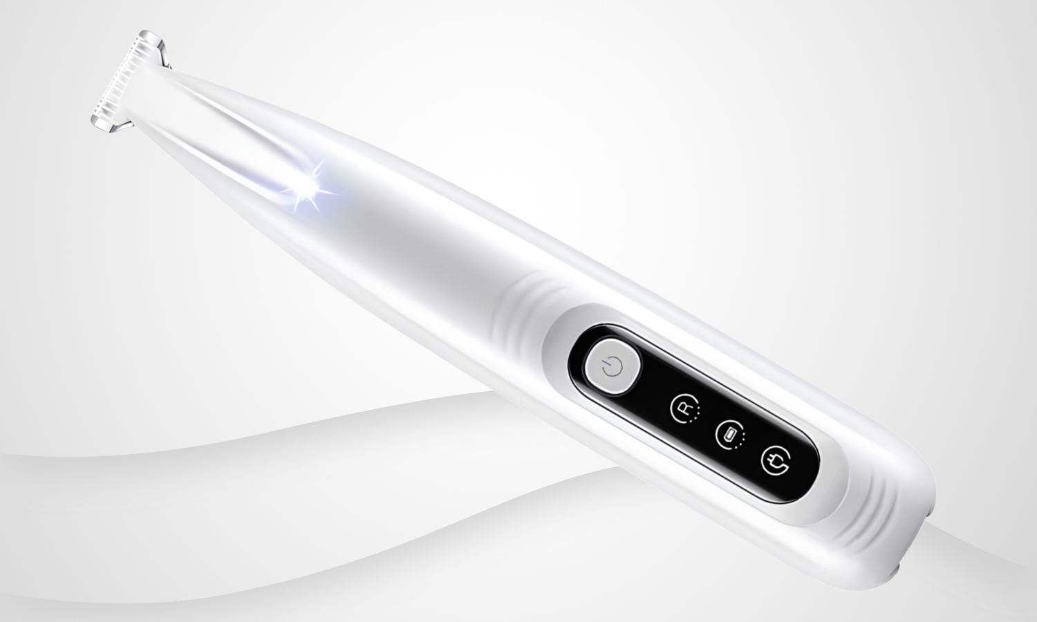 Turn on the LED and gently position the trimmer.